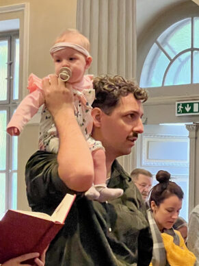 VCC Service 13.10.2024 Rosie Guitheil on shoulders of dad Derek – 1