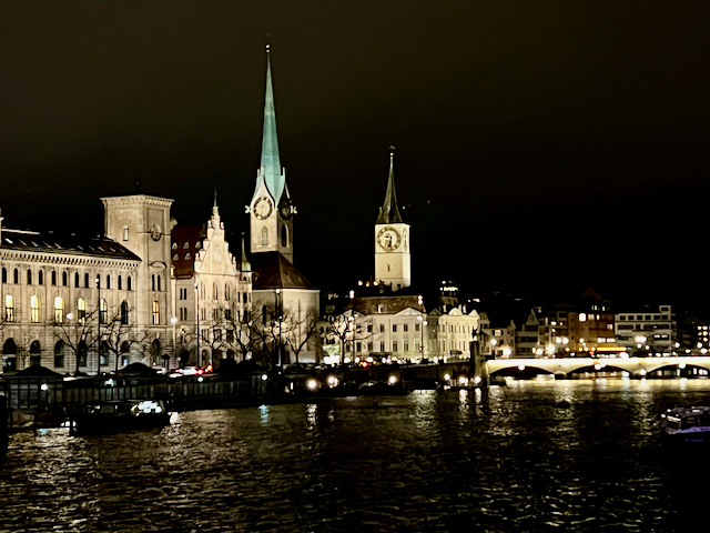 Zürich – night scene with illuminated churches – 1